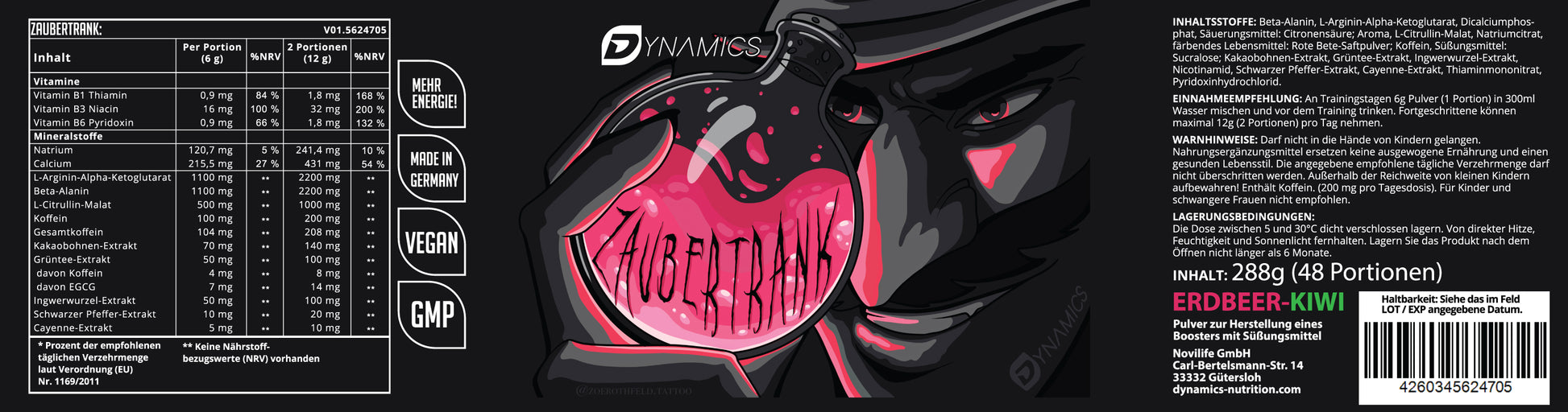 Mit Zaubertrank bekommst du die perfekte Mischung aus Power, Ausdauer & mentalem Fokus – damit du jede Trainingseinheit mit maximaler Intensität durchziehst! Eine hochdosierte Kombination aus Aminosäuren, Koffein, Pflanzenextrakten und essentiellen Vitaminen, die deine Leistung auf ein neues Level hebt.